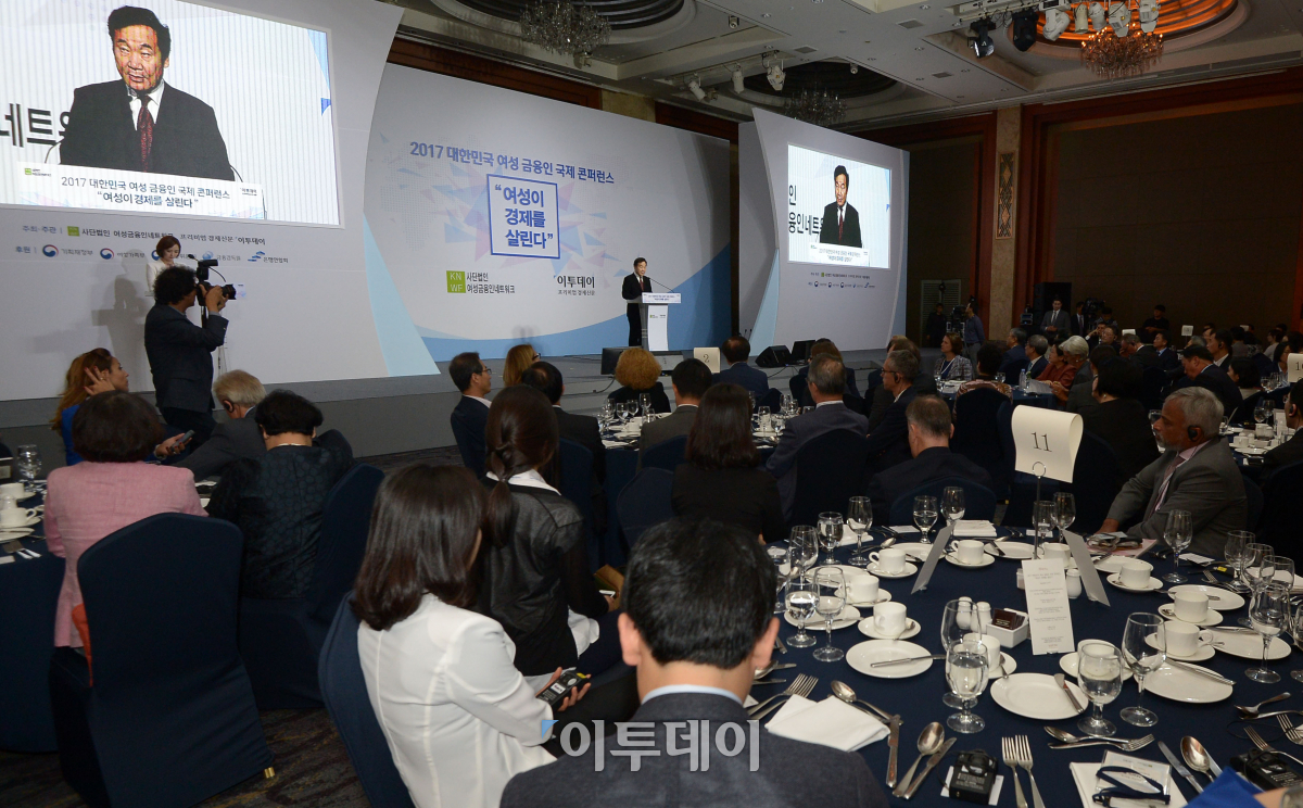 이낙연 국무총리가 6일 오전 서울 소공동 롯데호텔에서 열린 2017 대한민국 여성 금융인 국제 콘퍼런스에서 축사를 하고 있다. 이동근 기자 foto@