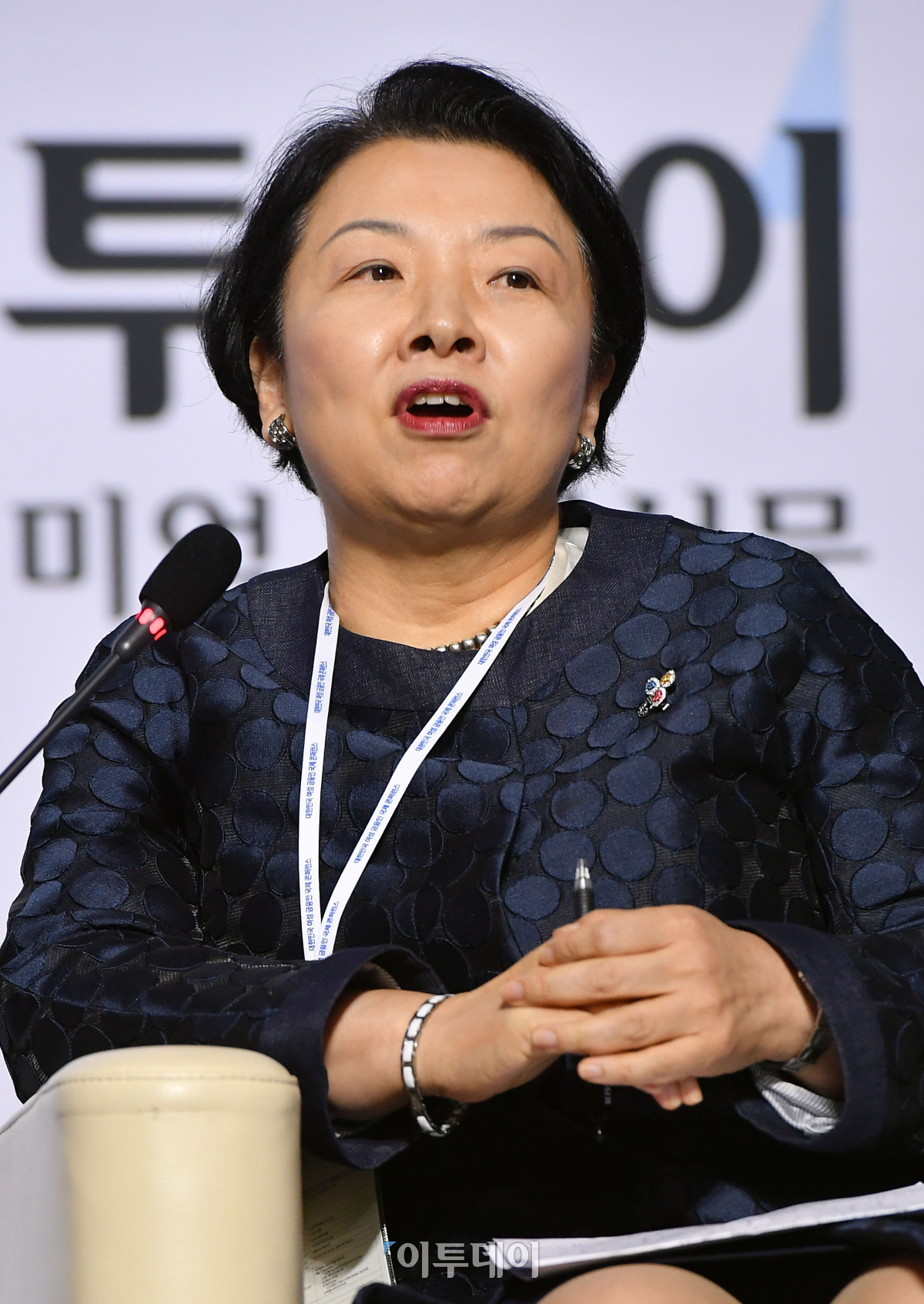 민희경 CJ부사장이 6일 오전 서울 소공동 롯데호텔에서 열린 2017 대한민국 여성 금융인 국제 콘퍼런스에서 패널토론에 참석해 발언하고 있다. 이동근 기자 foto@