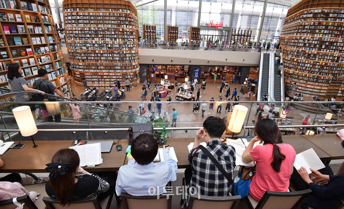 독서의 계절 가을이 찾아왔다. 10일 서울 강남구 코엑스 별마당도서관을 찾은 시민들이 책을 읽으며 주말을 즐기고 있다. 이동근 기자 foto@