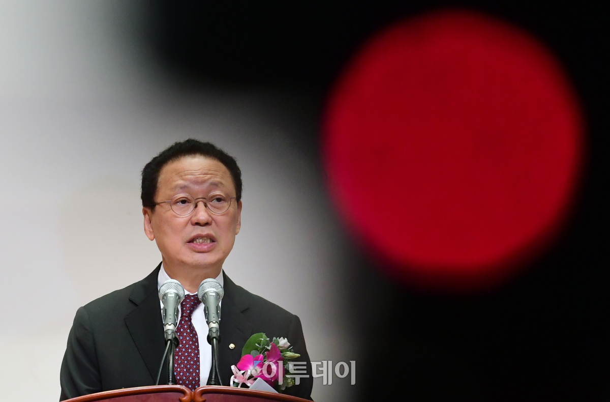 최흥식 금융감독원장이 11일 서울 여의도 금감원에서 열린 취임식에서 취임사를 하고 있다. 고이란 기자 photoeran@