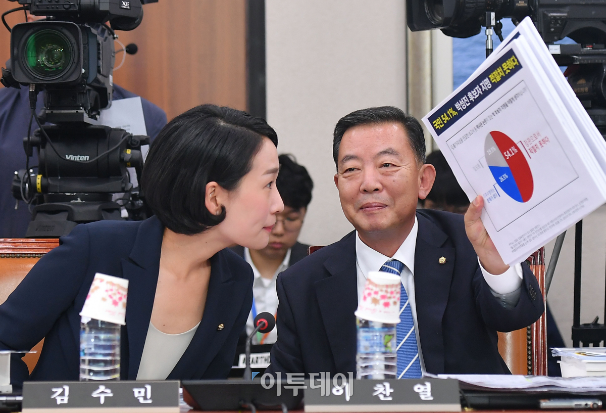 국민의당 이찬열 의원이 11일 오전 서울 여의도 국회에서 열린 박성진 중소벤처기업부 장관 후보자 인사청문회에서 준비한 자료를 들어 보이고 있다. 이동근 기자 foto@