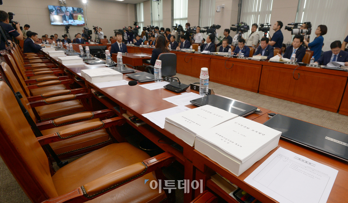 박성진 중소벤처기업부 장관 후보자의 인사청문회가 11일 오전 서울 여의도 국회에서 열린 가운데 자유한국당 의원들의 자리가 비어 있다. 이동근 기자 foto@