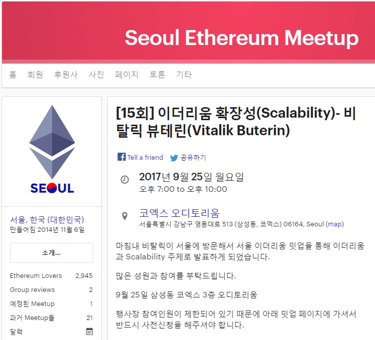 가상화폐 이더리움의 창시자인 비탈릭 부테린(Vitalik Buterin)이 열리는 서울 이더리움 밋업에 참여한다.