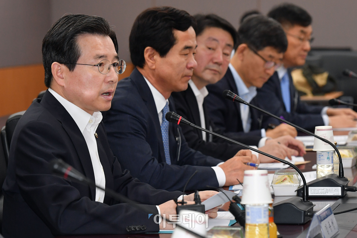 김용범 금융위원회 부위원장(왼쪽)이 19일 오전 서울 종로구 정부서울청사에서 열린 가계부채간담회에서 모두발언을 하고 있다. 이동근 기자 foto@