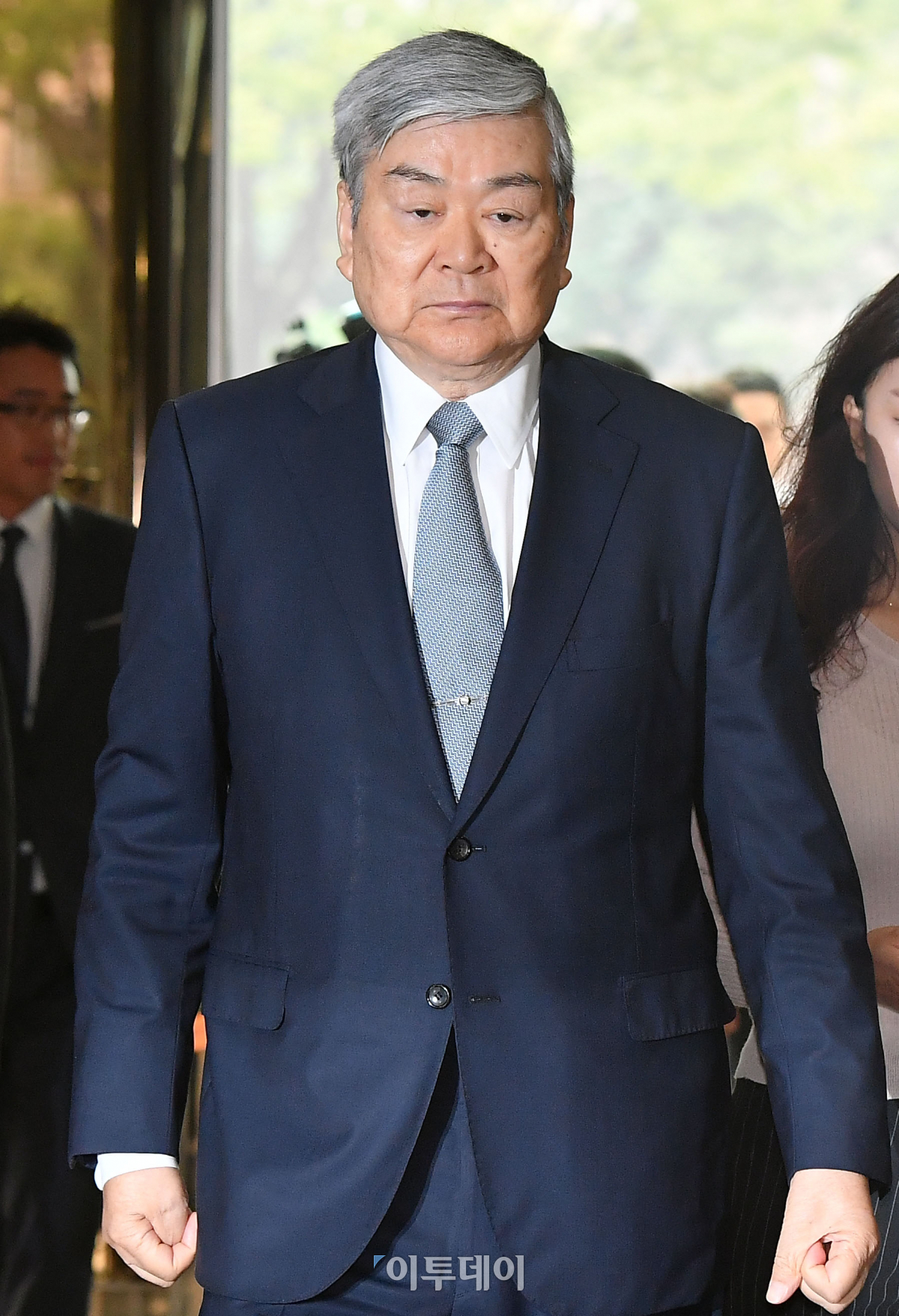 자택공사에 회삿돈을 유용한 혐의를 받고 있는 조양호 한진그룹 회장이 19일 오전 서울 서대문구 경찰청에 피의자 신분으로 출석하고 있다. 이동근 기자 foto@
