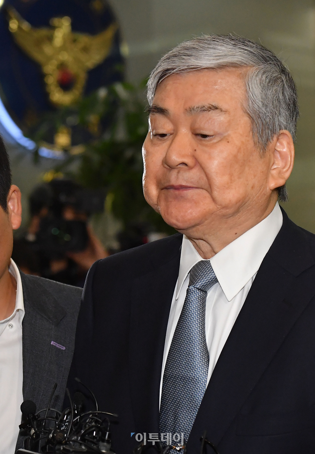 자택공사에 회삿돈을 유용한 혐의를 받고 있는 조양호 한진그룹 회장이 19일 오전 서울 서대문구 경찰청에 피의자 신분으로 출석하고 있다. 이동근 기자 foto@