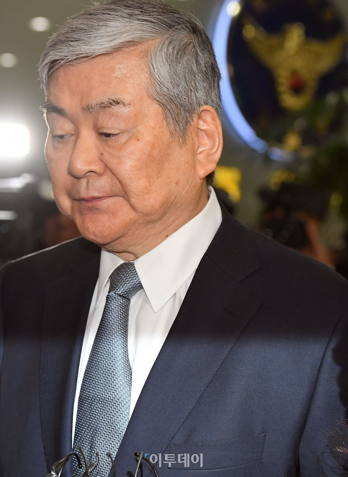자택공사에 회삿돈을 유용한 혐의를 받고 있는 조양호 한진그룹 회장이 19일 오전 서울 서대문구 경찰청에 피의자 신분으로 출석하고 있다. 이동근 기자 foto@
