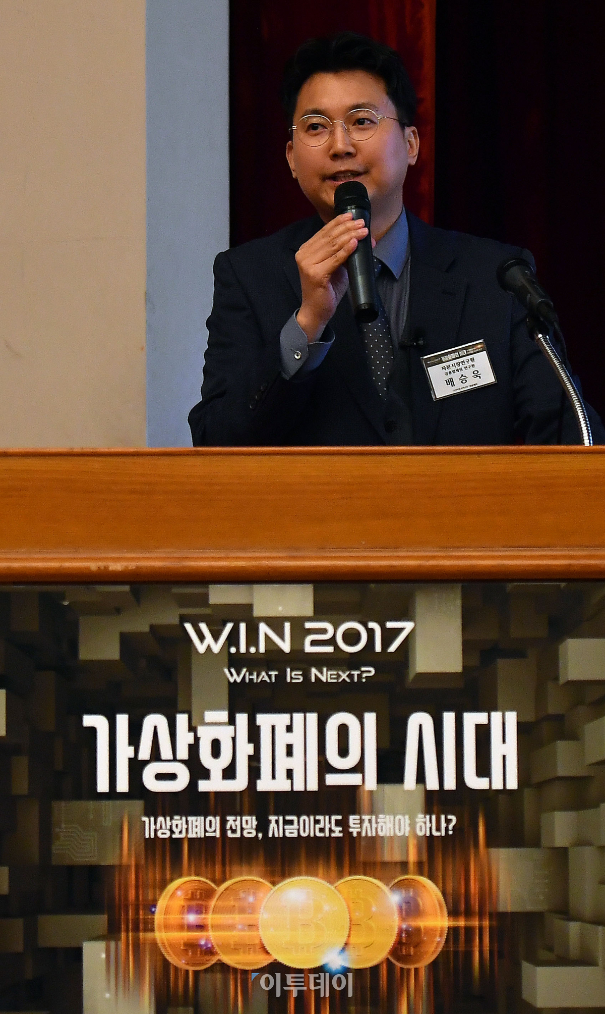 경제신문 이투데이가 주최하는 가상화폐 세미나 'W.I.N(What Is Next)2017 가상화폐의 시대' 가 20일 서울 여의도 하나금융투자 한마음홀에서 열린 가운데 배승욱 자본시장연구원 금융법제팀 연구원이 '가상통화관련 해외법률 및 판례 소개와 시사점'을 주제로 강연하고 있다. '가상화폐의 전망, 지금이라도 투자해야 하나?'를 주제로 열린 이번 세미나는 가상화폐는 무엇이며, 가격은 어떻게 형성되는지, 앞으로의 전망은 어떤지 등 실전 투자에 도움이 되는 정보를 제공한다. 이동근 기자 foto@