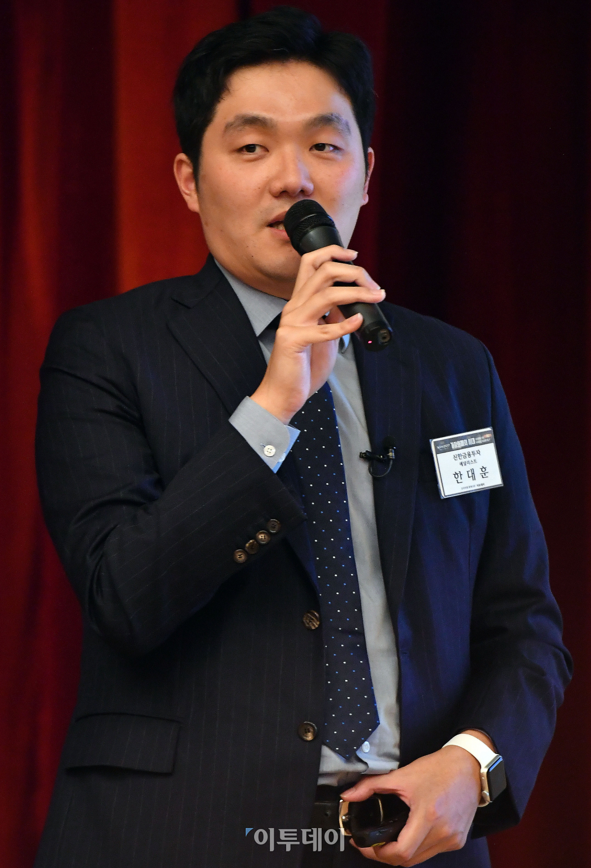 경제신문 이투데이가 주최하는 가상화폐 세미나 'W.I.N(What Is Next)2017 가상화폐의 시대' 가 20일 서울 여의도 하나금융투자 한마음홀에서 열린 가운데 한대훈 신한금융투자 애널리스트가 '주식 애널리스트가 비트코인에 주목하는 이유'를 주제로 강연하고 있다. '가상화폐의 전망, 지금이라도 투자해야 하나?'를 주제로 열린 이번 세미나는 가상화폐는 무엇이며 가격은 어떻게 형성되는지, 앞으로의 전망은 어떤지 등 실전 투자에 도움이 되는 정보를 제공한다. 이동근 기자 foto@