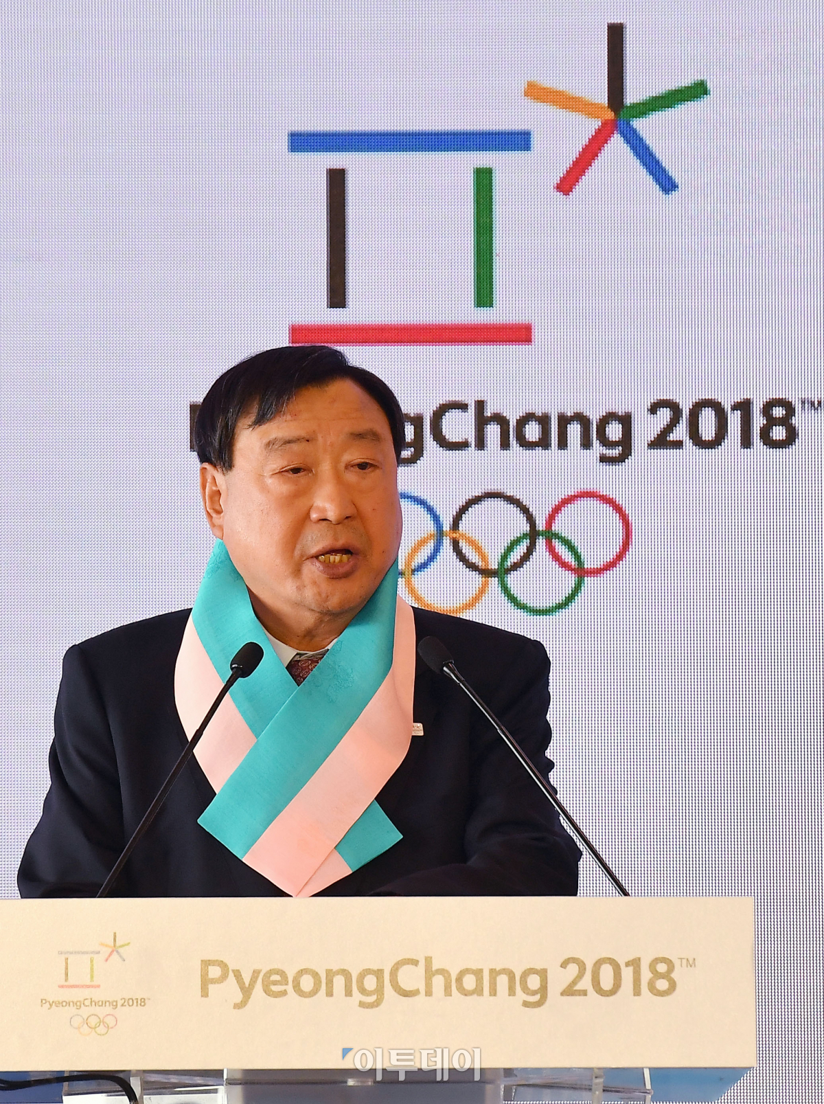 이희범 평창올림픽 조직위원장이 21일 오전 서울 중구 동대문디자인플라자에서 열린 2018 평창 동계올림픽대회 메달 발표회에서 인사말을 하고 있다. '한글'을 모티브로 제작된 메달의 측면엔 '평창동계올림픽이공일팔'의 자음인 'ㅍㅇㅊㅇㄷㅇㄱㅇㄹㄹㅁㅍㄱㅇㄱㅇㅇㄹㅍㄹ'을 새겨 입체적으로 구성했다. 이동근 기자 foto@