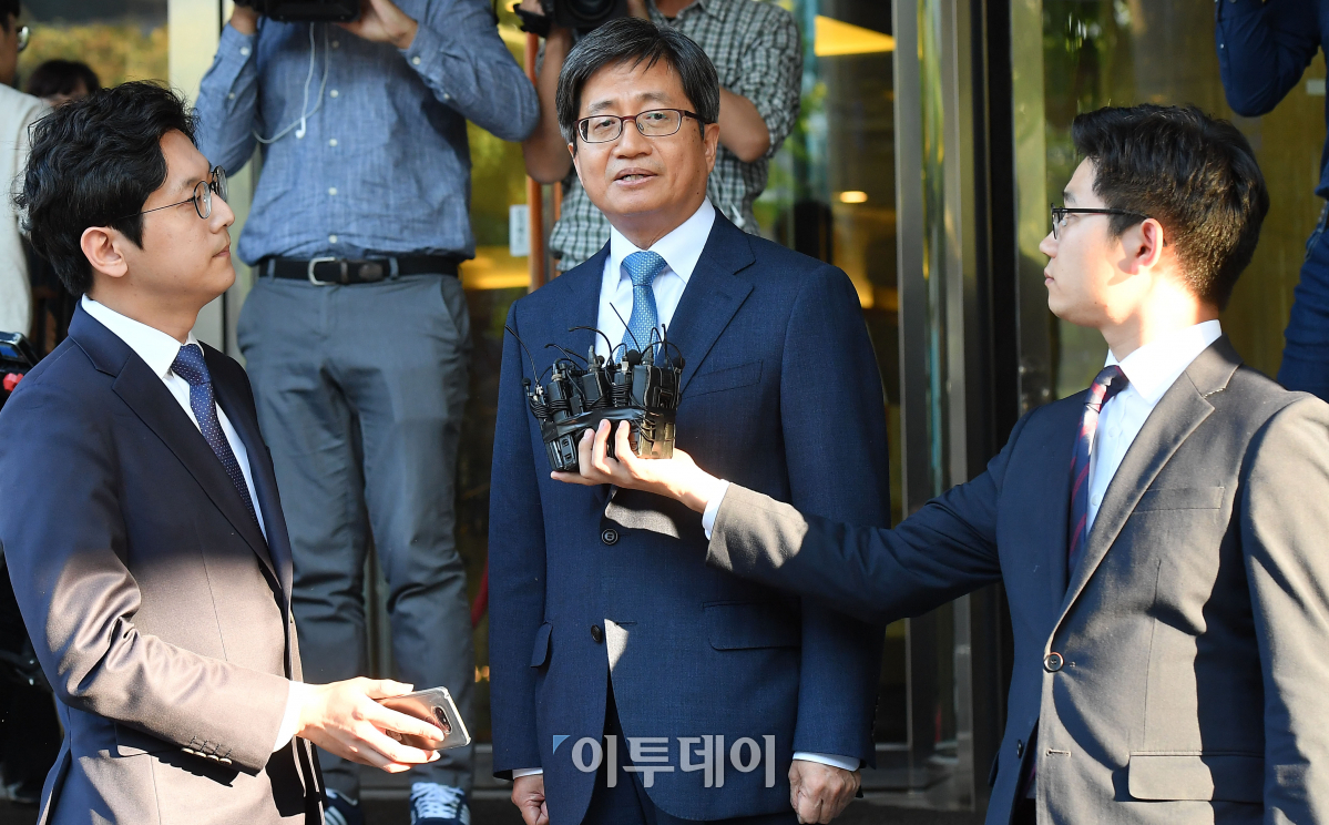 국회 임명동의안이 통과된 김명수 대법원장 후보자가 21일 서울 서초구 사법발전재단에 마련된 사무실을 나서며 소감을 밝히고 있다. 이동근 기자 foto@