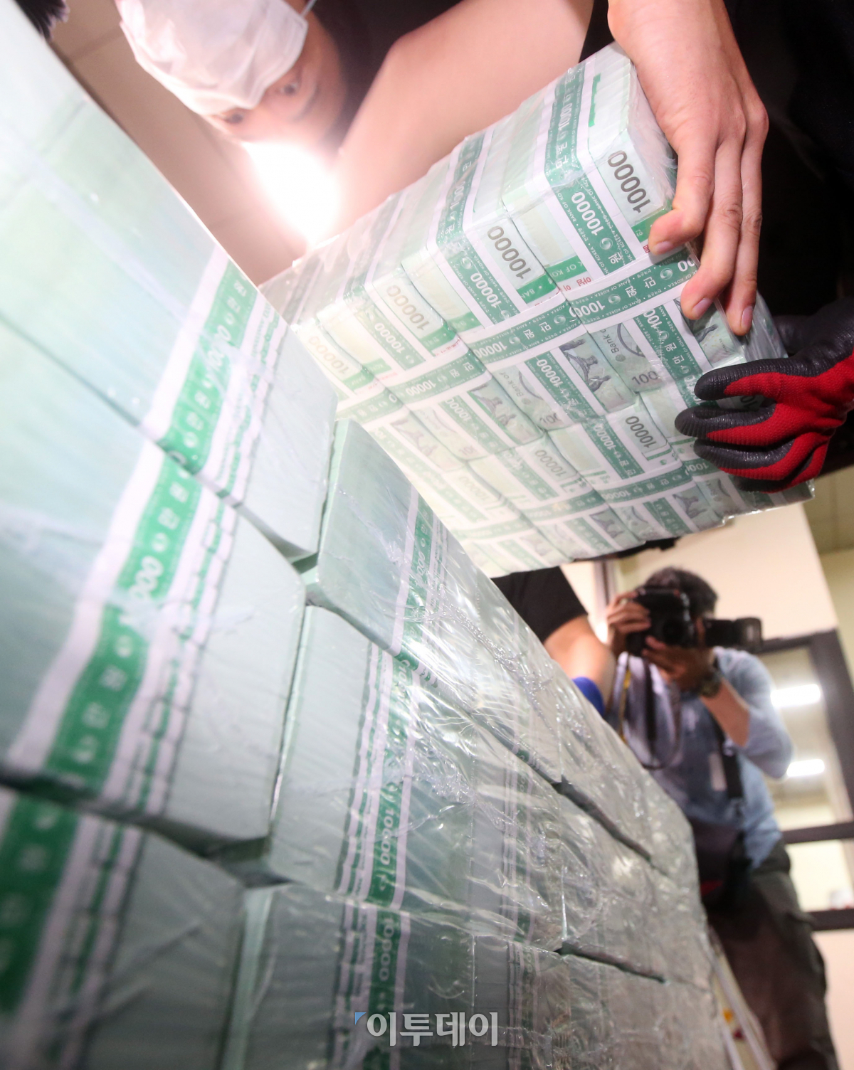 추석을 일주일여 앞둔 26일 오전 서울 강남구 한국은행 강남본부에서 직원들이 시중은행에 공급할 명절 자금을 방출하고 있다. 이동근 기자 foto@