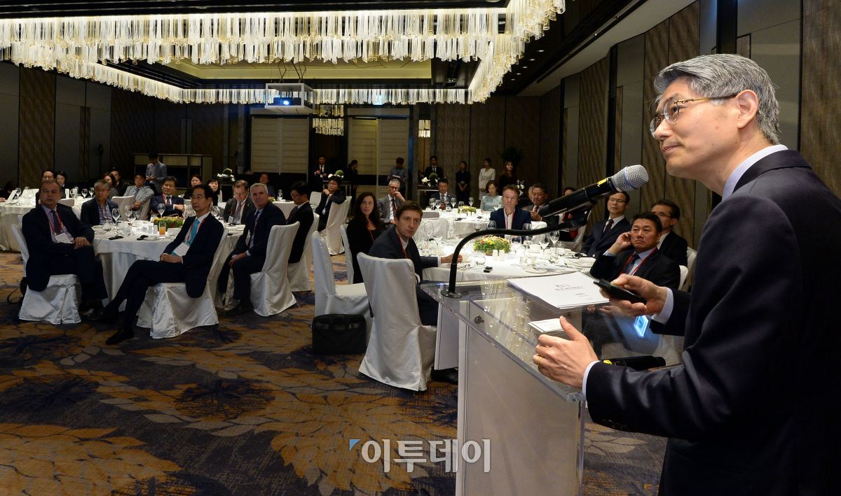 김찬우 외교부 기후변화대사가 27일 서울 종로구 포시즌스호텔에서 열린 서울 기후-에너지 회의 2017 초청만찬에서 지구를 위한 '지속가능한 성장 : 지속가능한 기후변화 해법은?'을 주제로 특별 강연하고 있다. 경제신문 이투데이와 (재)기후변화센터가 함께 주최하는 이번 서울 기후-에너지 회의 (CESS)2017은 국내외 기후환경 및 에너지 전문가를 초청해 신기후 체제에서의 우리의 노력과 역할을 알아보기 위한 자리로 오는 28일 포시즌스 호텔에서 열린다. 이동근 기자 foto@