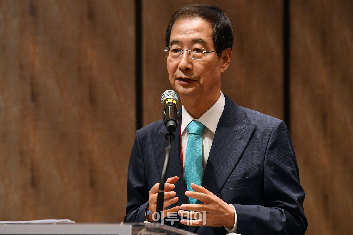 한덕수 기후변화센터 이사장이 27일 서울 종로구 포시즌스호텔에서 열린 서울 기후-에너지 회의 2017 초청만찬에서 인사말을 하고 있다. 경제신문 이투데이와 (재)기후변화센터가 함께 주최하는 이번 서울 기후-에너지 회의 (CESS)2017은 국내외 기후환경 및 에너지 전문가를 초청해 신기후 체제에서의 우리의 노력과 역할을 알아보기 위한 자리로 오는 28일 포시즌스 호텔에서 열린다. 이동근 기자 foto@