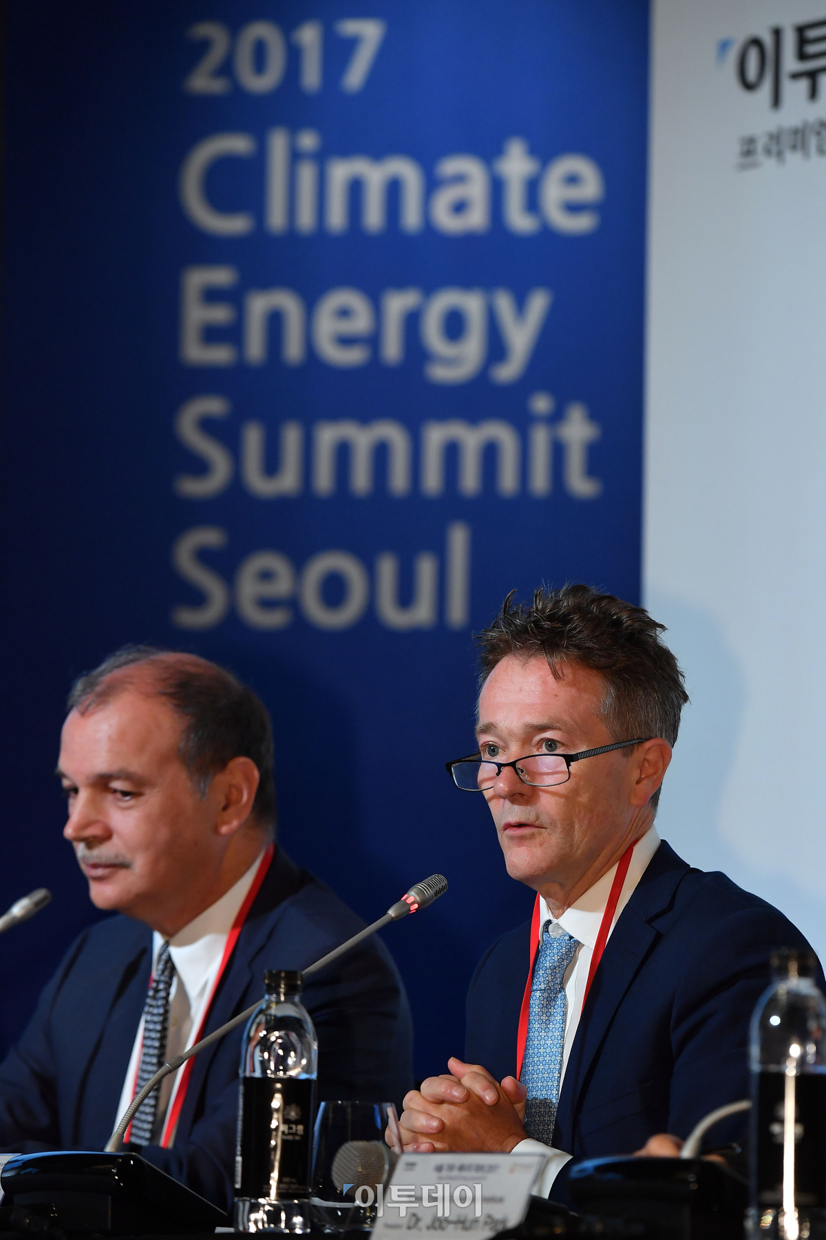 닉 너톨 유엔기후변화협약 대변인이 28일 서울 종로구 포시즌스호텔에서 열린 서울 기후-에너지 회의 2017에서 '새로운 기후경제시대의 위험성과 기회'를 주제로 발표하고 있다. 이동근 기자 foto@