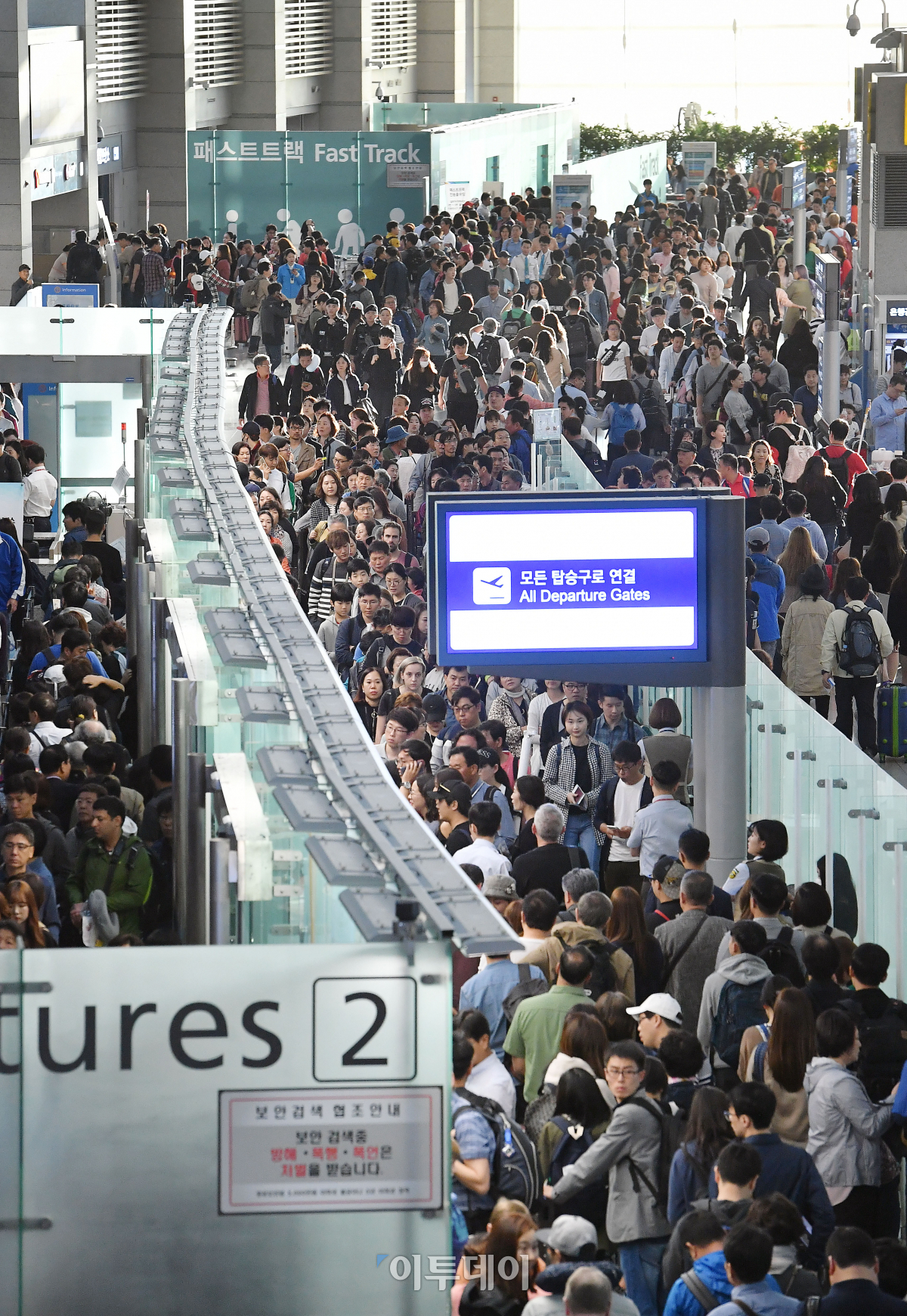 최장 열흘간의 추석 황금연휴에 인천국제공항을 이용객이 하루 평균 18만7000여 명에 달한 것으로 추산됐다. 항공기 운항횟수와 면세점 매출 등도 신기록을 세웠다.