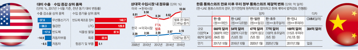 한국 경제가 미국과 중국의 통상 압력 속에서 한 치 앞도 보이지 않는 터널로 들어가고 있다. 중국의 사드(고고도미사일방어체계·THAAD) 배치에 따른 경제 보복은 계속되고 있고 미국은 한·미 자유무역협정(FTA) 재협상에 이어 한국 세탁기에 대한 세이프가드(긴급 수입제한조치)가능성도 예고했다. 힘을 앞세운 미국과 중국에 떠밀려 속수무책으로 당하고 있는 것이다. 1997년 외환위기 이후 최대의 위기라는 평가까지 나온다.