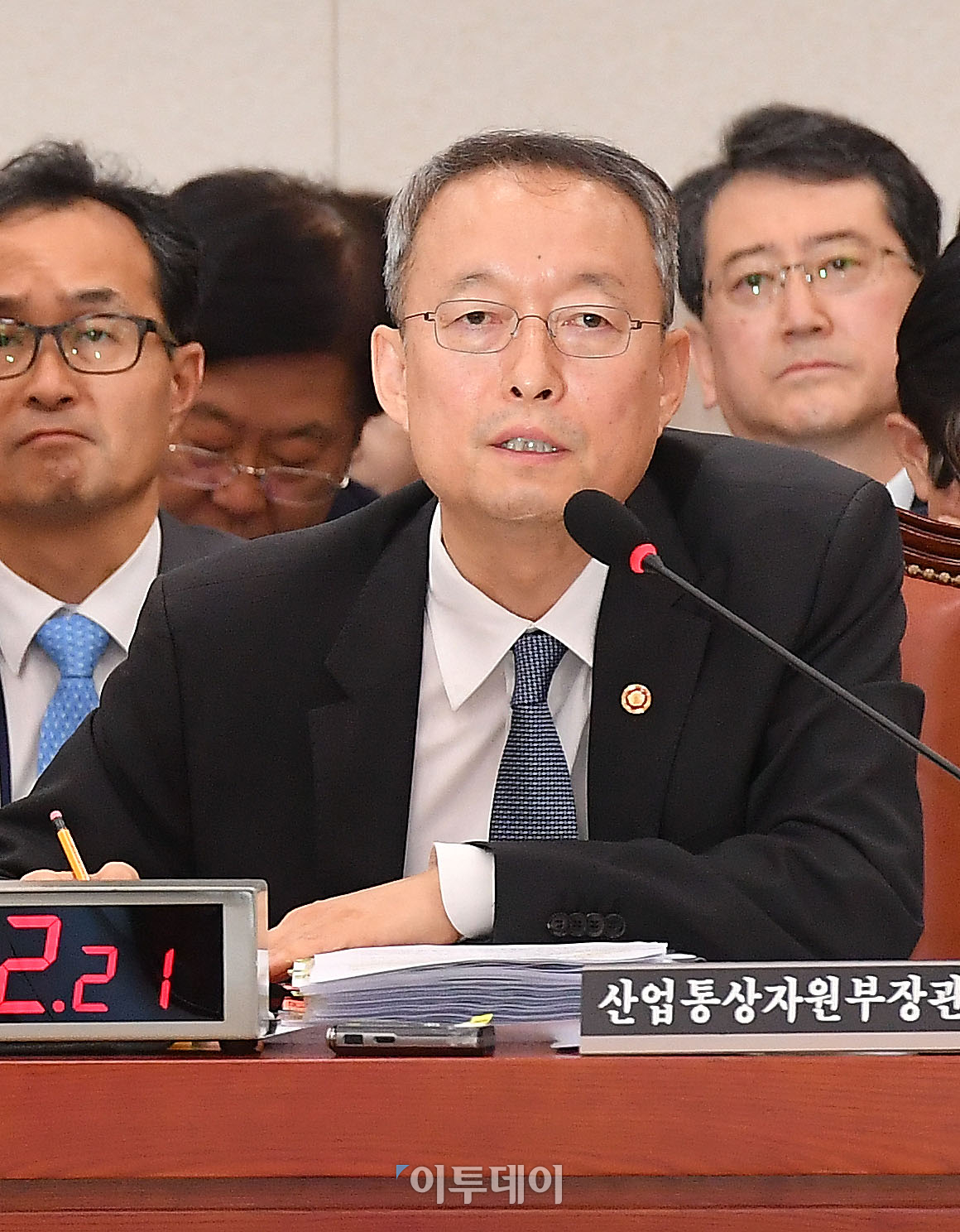 백운규 산업통상자원부 장관이 12일 서울 여의도 국회에서 열린 산업통상자원부 에너지분야 국정감사에서 질의에 답하고 있다. 이동근 기자 foto@