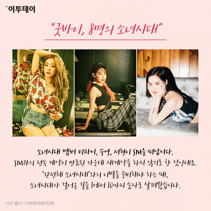 소녀시대 멤버 티파니, 수영, 서현이 SM을 떠납니다.SM과의 전속 계약이 만료된 가운데 재계약을 하지 않기로 한 것인데요.