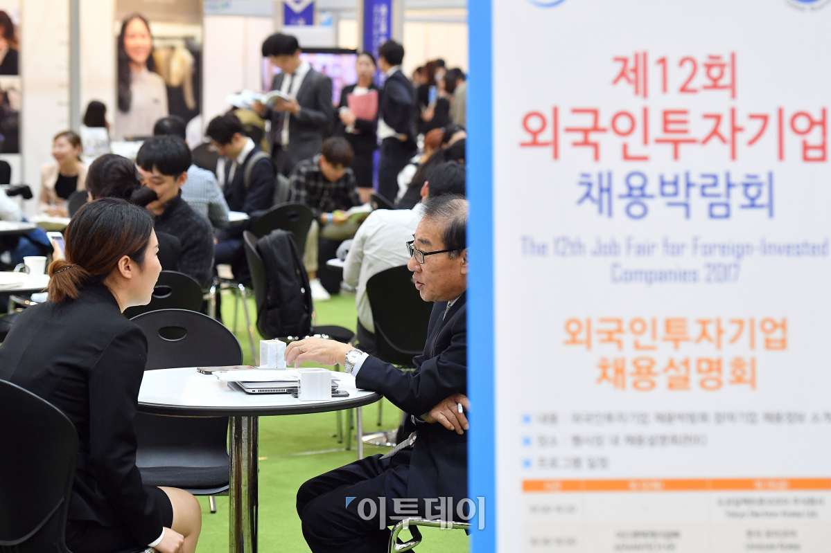 제12회 외국인투자기업 채용박람회가 12일 서울 강남구 코엑스에서 열린 가운데 구직자들이 채용상담을 받고 있다. 지멘스, 한국쓰리엠 등 '포춘지' 선정 500대 세계적 기업 31개 사를 포함해 외국인 투자기업 136개사가 참가한 이번박람회는 채용설명회와 현장 면접을 통해 약 500명을 채용할 계획이다. 이동근 기자 foto@