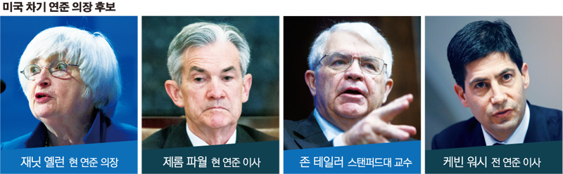 연준의 현직 인사 중에서는 옐런 의장과 제롬 파월 이사가 유력한 차기 의장 후보로 거론되고 있다. 학계에서는 케빈 워시 전 연준 이사와 중앙은행의 통화정책 결정 기준인 이른바 ‘테일러 준칙’으로 유명한 존 테일러 스탠퍼드대 경제학 교수가 물망에 올랐다.