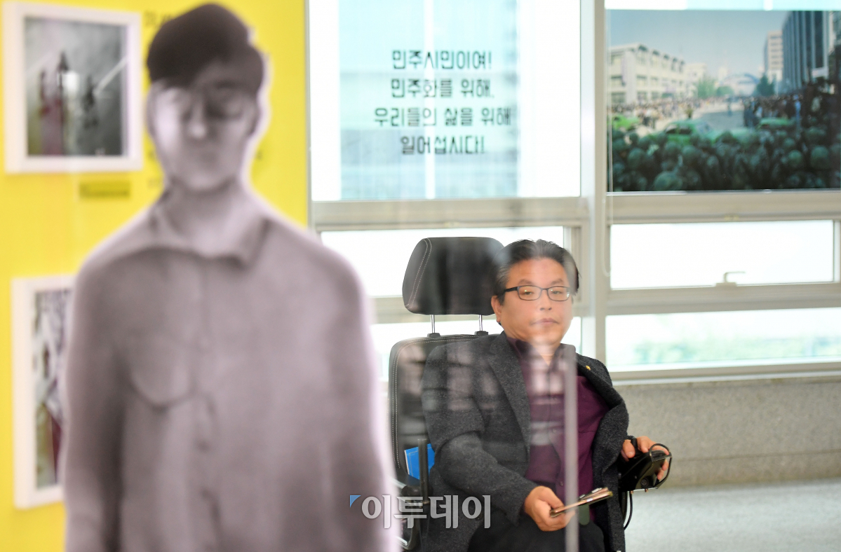 16일 서울 여의도 국회 의원회관에서 열린 '5.18진상규명특별법' 국회통과를 위한 힌츠 페터 5.18사진전에서 참관객이 전시물을 살펴보고 있다. 이동근 기자 foto@