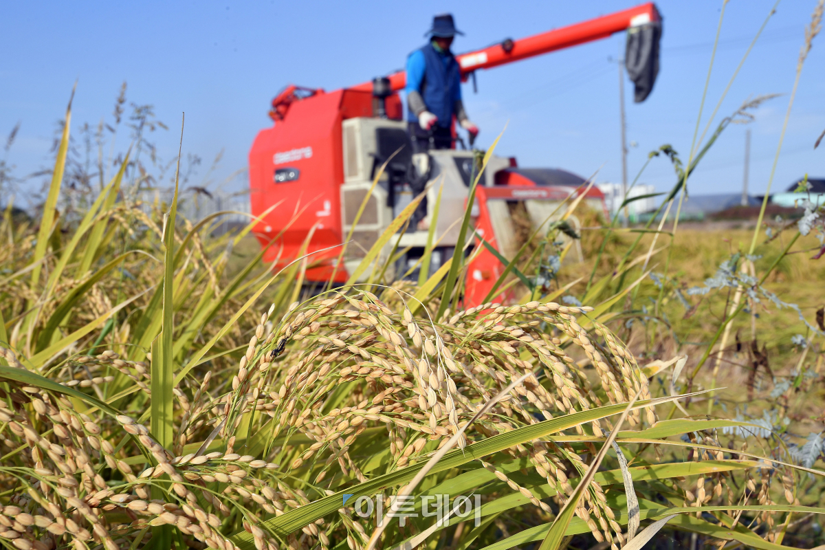 수확의 계절인 가을이 깊어지고 있다. 16일 경기 고양시 송포동 인근 논에서 한 농부가 콤바인을 이용해 추수를 하고 있다. 이동근 기자 foto@