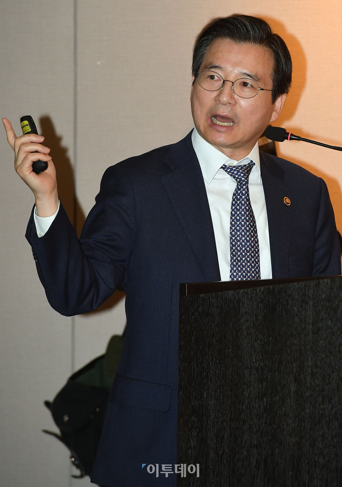 김용범 금융위원회 부위원장이 18일 오전 서울 중구 플라자호텔에서 열린 대한상의 금융위원회 제31차 회의에서 '생산적 금융과 포용적 금융'을 주제로 강연하고 있다. 이동근 기자 foto@