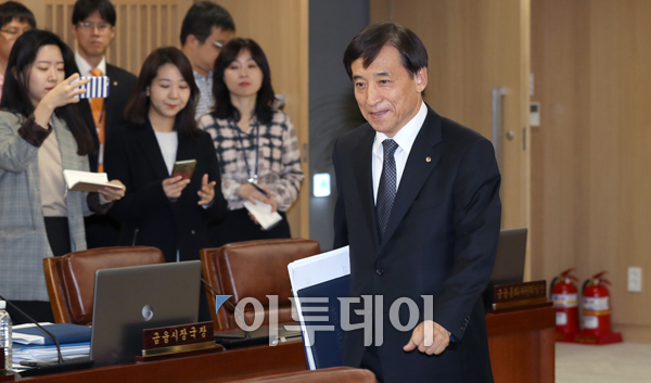 이주열 한국은행 총재가 19일 오전 서울 중구 한국은행에서 열린 금융통화위원회에 참석하고 있다. 고이란 기자 photoeran@