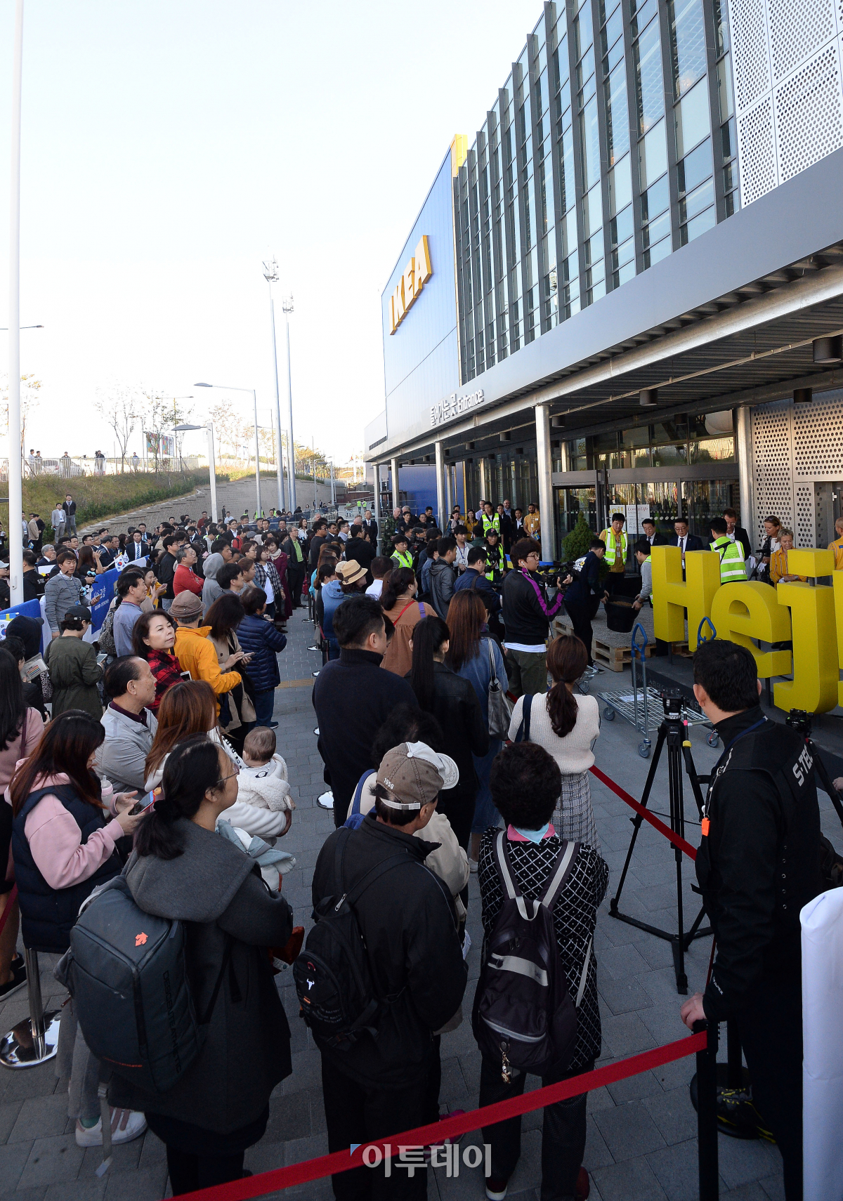 국내 이케아 두번째 매장인 고양점이 19일 문을 열었다. 고양점은 경기 고양시 도내동에 면적 5만 2199㎡, 4층 규모 건물로 지어졌으며 2~3층을 사용하며, 1~B1층엔 롯데아울렛이 들어선다. 이날 이케아 고양점을 찾은 시민들이 입장을 하기 위해 줄지어 서 있다. 이동근 기자 foto@