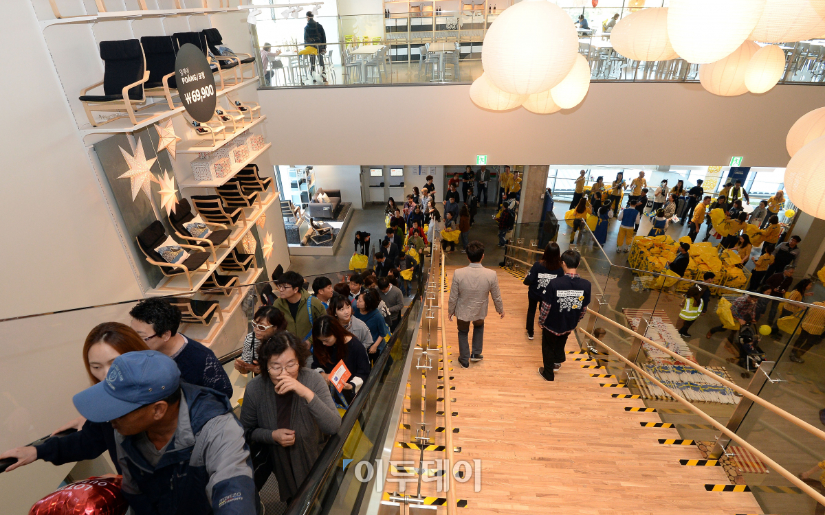 국내 이케아 두번째 매장인 고양점이 19일 문을 열었다. 고양점은 경기 고양시 도내동에 면적 5만 2199㎡, 4층 규모 건물로 지어졌다. 2~3층을 사용하며, 1~B1층엔 롯데아울렛이 들어선다. 이날 이케아 고양점을 찾은 시민들이 내부를 둘러보고 있다. 이동근 기자 foto@