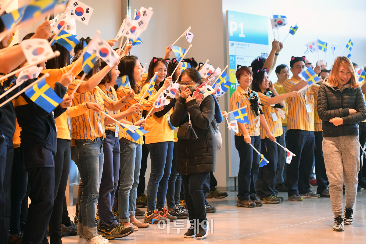 국내 이케아 두번째 매장인 고양점이 19일 문을 열었다. 고양점은 경기 고양시 도내동에 면적 5만 2199㎡, 4층 규모 건물로 지어졌다. 2~3층을 사용하며, 1~B1층엔 롯데아울렛이 들어선다. 이날 이케아 고양점 직원들이 태극기와 스웨덴 깃발을 흔들며 입장하는 고객을 맞이하고 있다. 이동근 기자 foto@