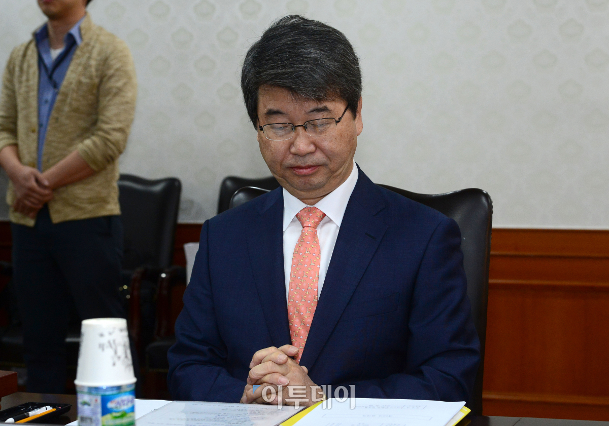 김지형 신고리 5·6호기 공론화위원장이 20일 오전 서울 종로구 정부서울청사에서 열린 공론화위원회 전체회의에서 입술을 굳게 다물고 굳은 표정을 짓고 있다. 공론화위원회는 이날 10시 5·6호기 건설을 영구중단할지, 아니면 재개할지 공론조사 결과를 담은 '대(對)정부권고안'을 발표한다. 이동근 기자 foto@