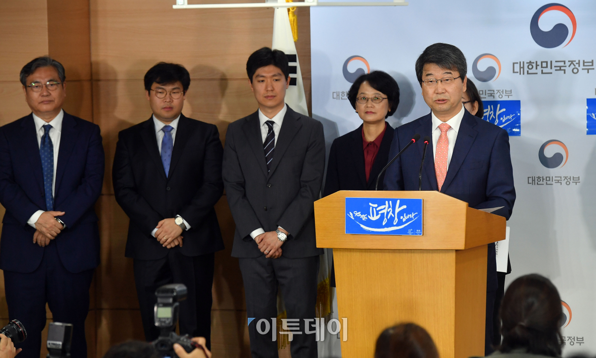 김지형 신고리 5·6호기 공론화위원장이 20일 오전 서울 종로구 정부서울청사 브리핑룸에서 공론조사결과를 담은 '대(對)정부 권고안'을 발표하고 있다. 이동근 기자 foto@