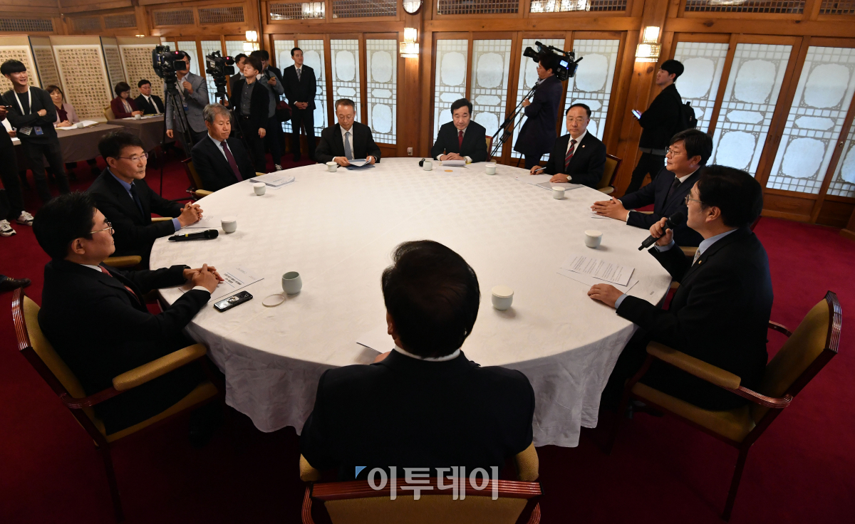 신고리 5,6호기 공론화위원회의 대정부권고안이 발표된 20일 서울 종로구 총리공관에서 열린 고위당정청 협의가 열리고 있다. 이날 우원식 더불어민주당 원내대표, 김태년 정책위의장, 이춘석 사무총장, 이낙연 국무총리, 백운규 산업부 장관, 홍남기 국무조정실장, 장하성 청와대 정책실장, 김수현 사회수석, 전병헌 정무수석이 참석했다. 이동근 기자 foto@
