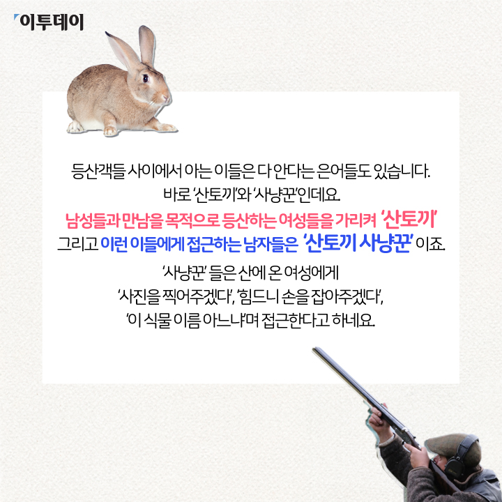 남성들과 만남을 목적으로 등산하는 여성들을 가리켜 ‘산토끼’