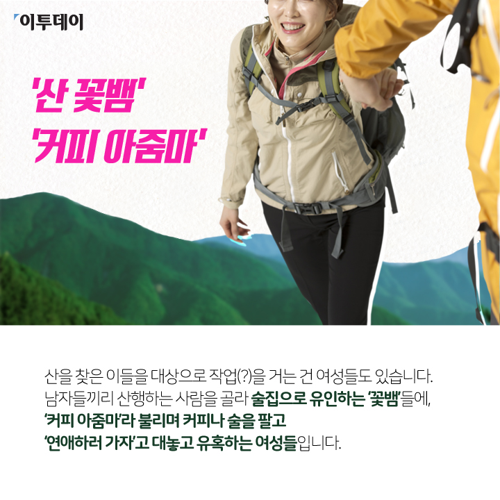 남자들끼리 산행하는 사람을 골라 술집으로 유인하는 ‘꽃뱀’들에,
