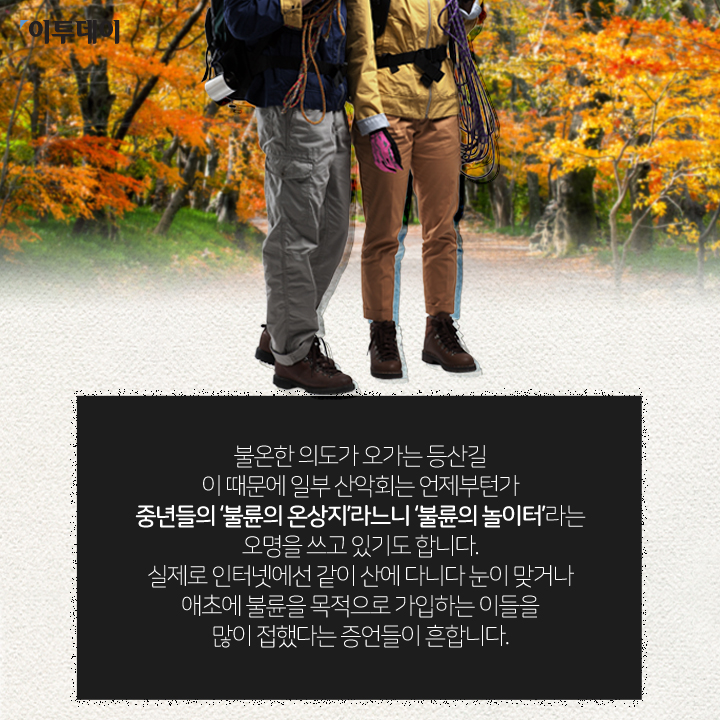 등산과 불륜에 얽힌 낯 뜨거운 얘기들까지 생겨났죠.