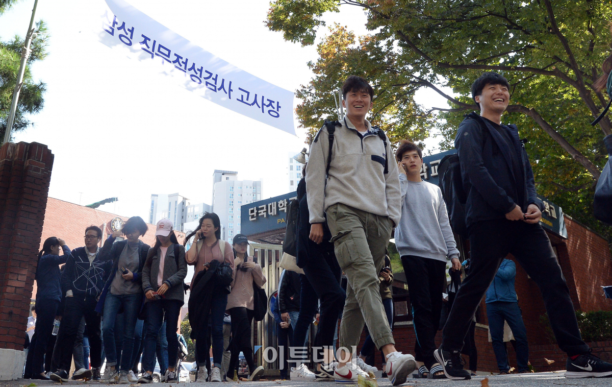 [포토] 밝은 표정으로 고사장 나서는 지원자들