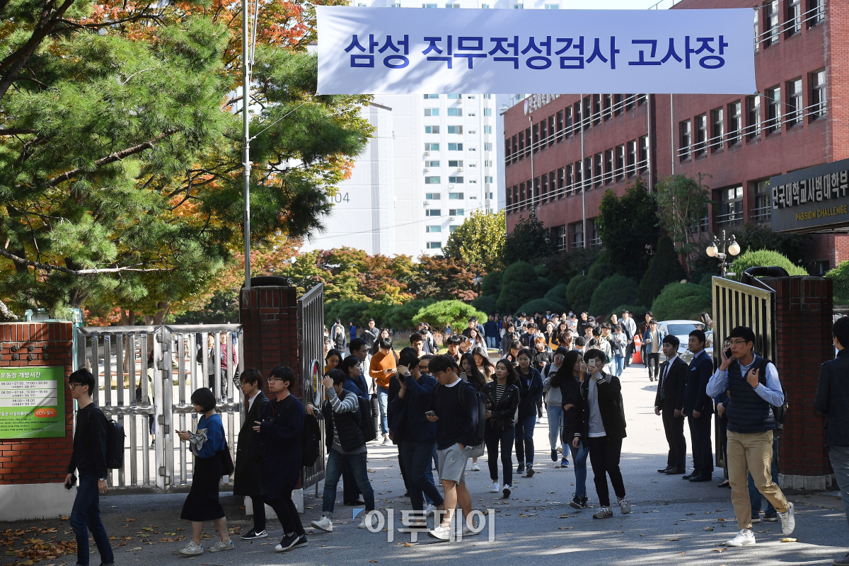 삼성그룹 직무적성검사(GSAT)가 22일 전국 5개 도시(서울, 부산, 대구, 대전, 광주)와 미국 일부 지역에서 일제히 실시된 가운데 시험을 마친 지원자들이 서울 강남구 단대부고에 마련된 고사장을 나서고 있다. 이동근 기자 foto@