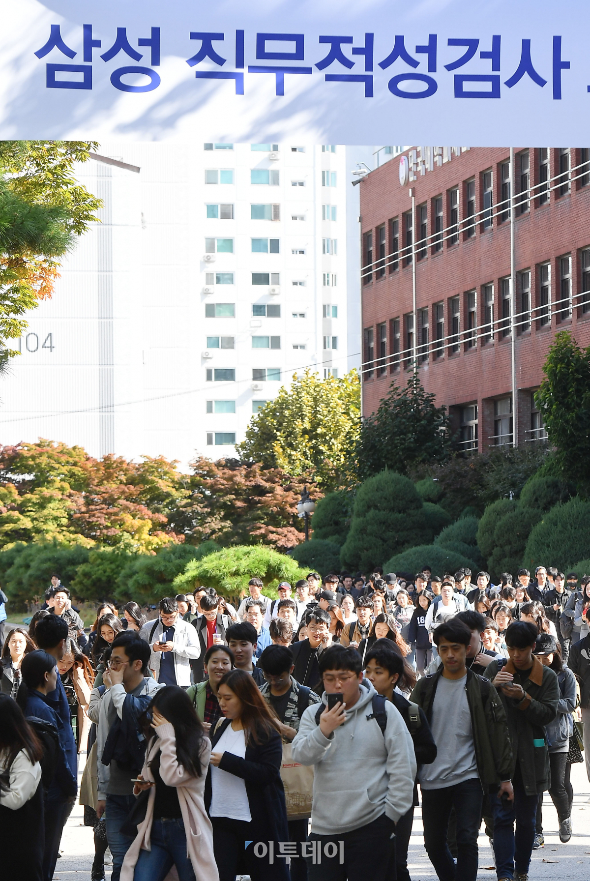 삼성그룹 직무적성검사(GSAT)가 22일 전국 5개 도시(서울, 부산, 대구, 대전, 광주)와 미국 일부 지역에서 일제히 실시된 가운데 시험을 마친 지원자들이 서울 강남구 단대부고에 마련된 고사장을 나서고 있다. 이동근 기자 foto@