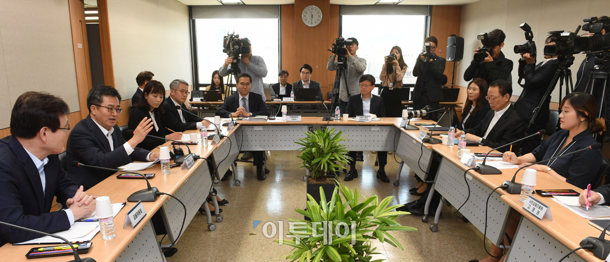 김동연 경제부총리 겸 기획재정부 장관이 가계부채 대책 발표 전 서민 금융 현장 방문의 일환으로 23일 서울 중구 중앙서민금융통합지원센터를 방문해 관계자들과 현장 간담회를 갖고 있다. 이동근 기자 foto@