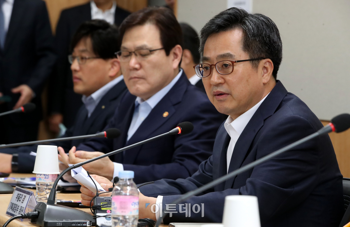 김동연 경제부총리 겸 기획재정부 장관이 가계부채 대책 발표 전 서민 금융 현장 방문의 일환으로 23일 서울 중구 중앙서민금융통합지원센터를 방문해 관계자들과 현장 간담회를 갖고 있다. 이동근 기자 foto@
