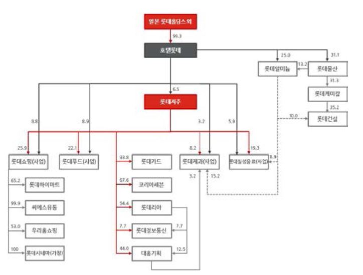 롯데지주는 자회사의 추가 지분 확보 과제도 있다. 공정거래법상 지주사는 자회사의 지분 20%(비상장사는 40%) 이상을 보유해야 한다. 롯데지주는 롯데제과의 지분 12%를 추가 확보해야 한다. 호텔롯데와 롯데물산, 롯데케미칼, 롯데건설을 지주 체제로 끌어들이는 것도 과제다.