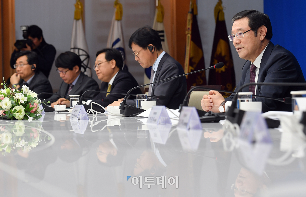 이용섭 일자리위원회 부위원장이 26일 오전 서울 중구 대한상공회의소 챔버라운지에서 열린 일자리위원회-주한미국상공회의소 정책간담회에서 인사말을 하고 있다. 이동근 기자 foto@