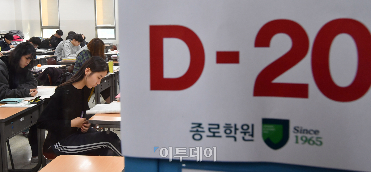 2018학년도 대학수학능력시험을 20일 앞둔 27일 오전 서울 중구 종로학원에서 수험생들이 막바지 정리에 집중하고 있다. 이동근 기자 foto@