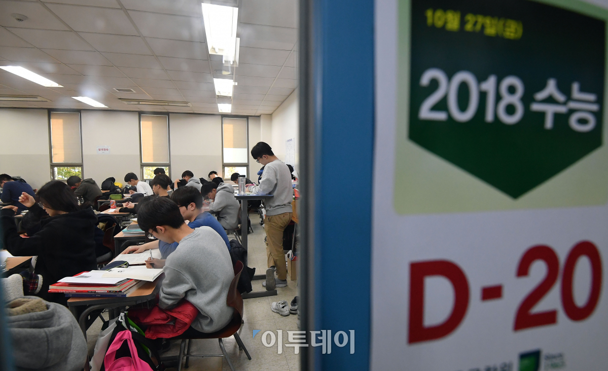 2018학년도 대학수학능력시험을 20일 앞둔 27일 오전 서울 중구 종로학원에서 수험생들이 막바지 정리에 집중하고 있다. 이동근 기자 foto@