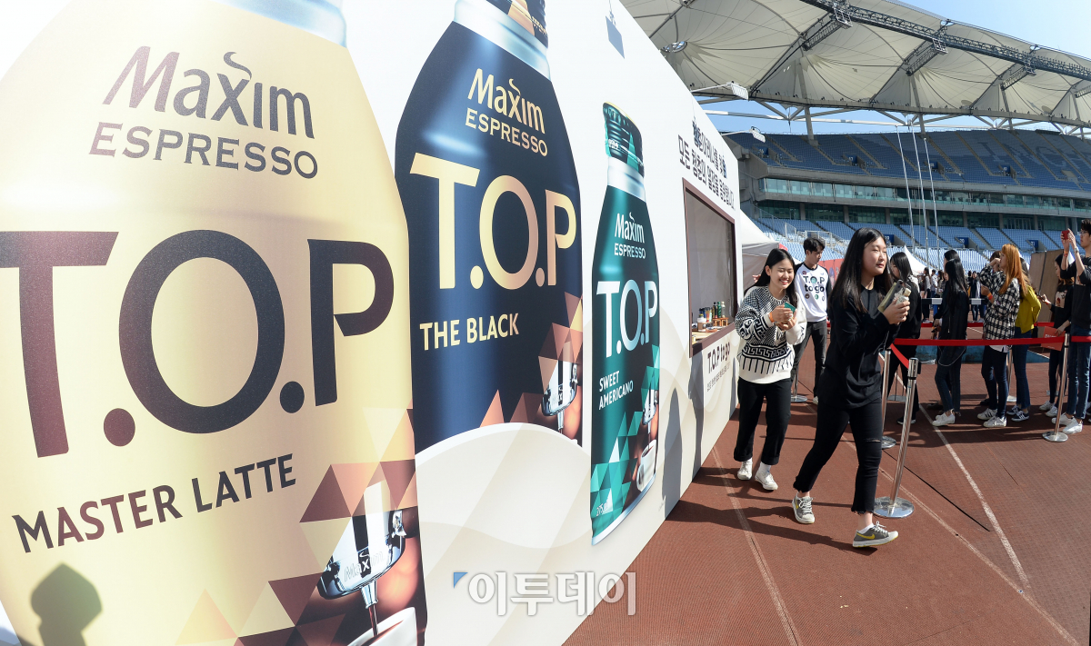 청춘을 위한 복합문화 페스티벌 '청춘아레나'가 28일 인천 남구 문학경기장에서 열렸다. 이날 행사장에 마련된 동서식품 홍보부스에서 시민들이 음료를 시음을 위해 줄을 서 있다. 이동근 기자 foto@