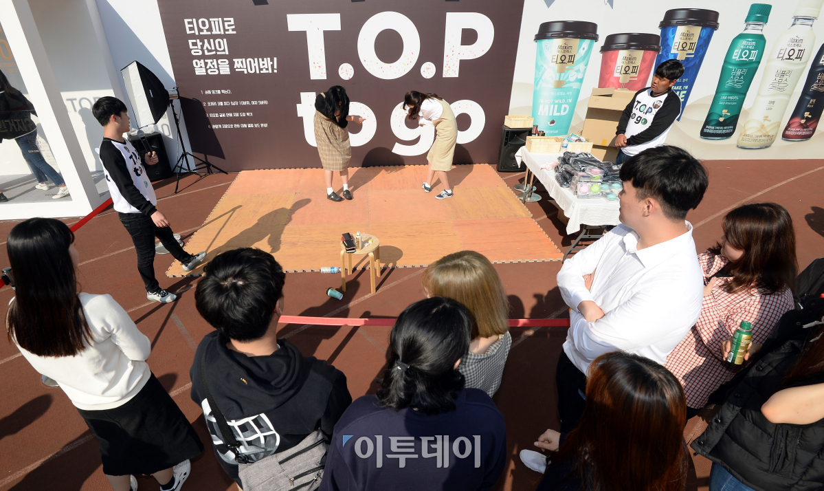 청춘을 위한 복합문화 페스티벌 '청춘아레나'가 28일 인천 남구 문학경기장에서 열렸다. 이날 행사장에 마련된 동서식품 홍보부스에서 시민들이 이벤트에 참여하고 있다. 이동근 기자 foto@
