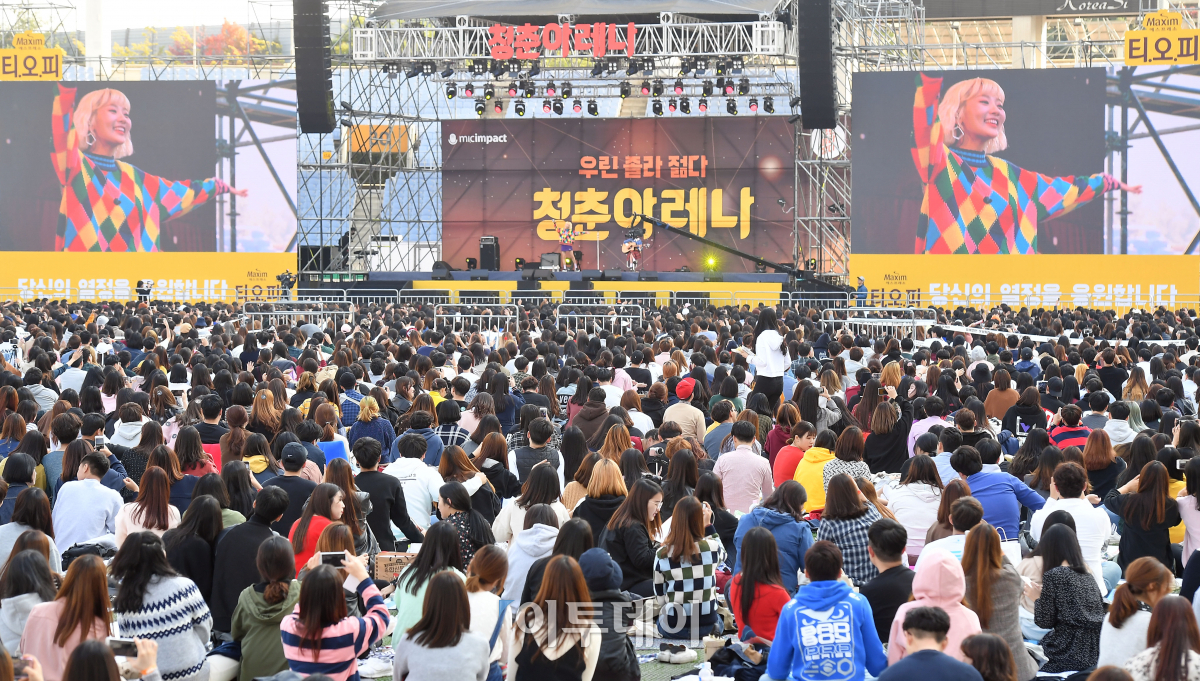 청춘을 위한 복합문화 페스티벌 '청춘아레나'가 28일 인천 남구 문학경기장에서 열린 가운데 가수 볼빨간 사춘기가 관객들과 호흡하며 무대를 꾸미고 있다. 이동근 기자 foto@